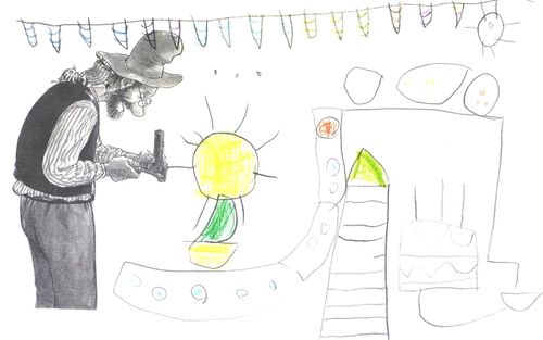Von Kindern selbst gebauter Zeichnungsrotober.
